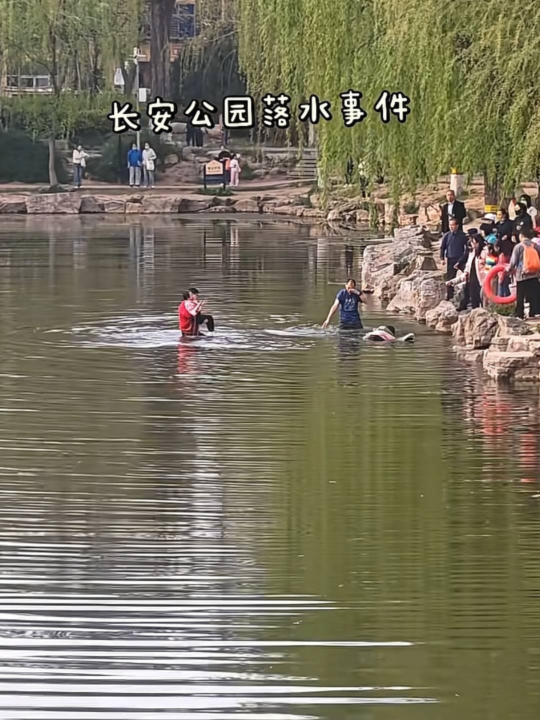 该网友发文介绍,11日下午6时许,她在河北石家庄市的长安公园游玩,看到一名小女孩落水,岸边的一名女子随即跳入水中,但似乎不会游泳,女子在水中无法站起来,也遇到了危险。所幸遇到了红衣男子出手相助。